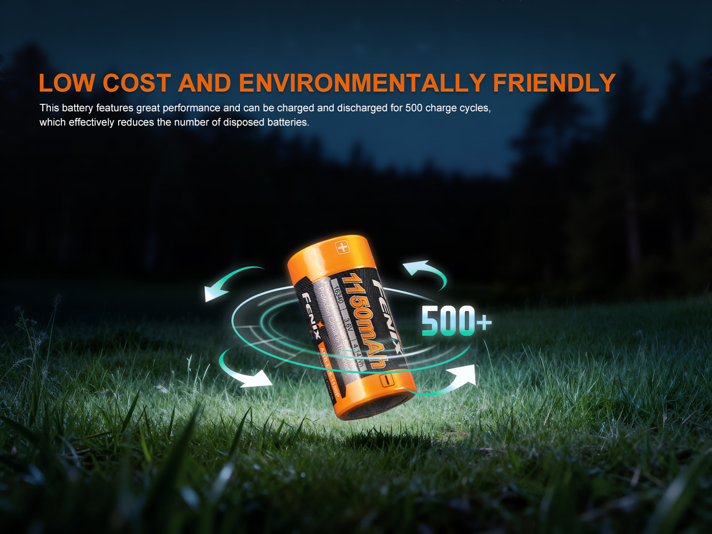 De ARB-L16-1150P is een 16340batterij die beschikt over 1150 mAh.