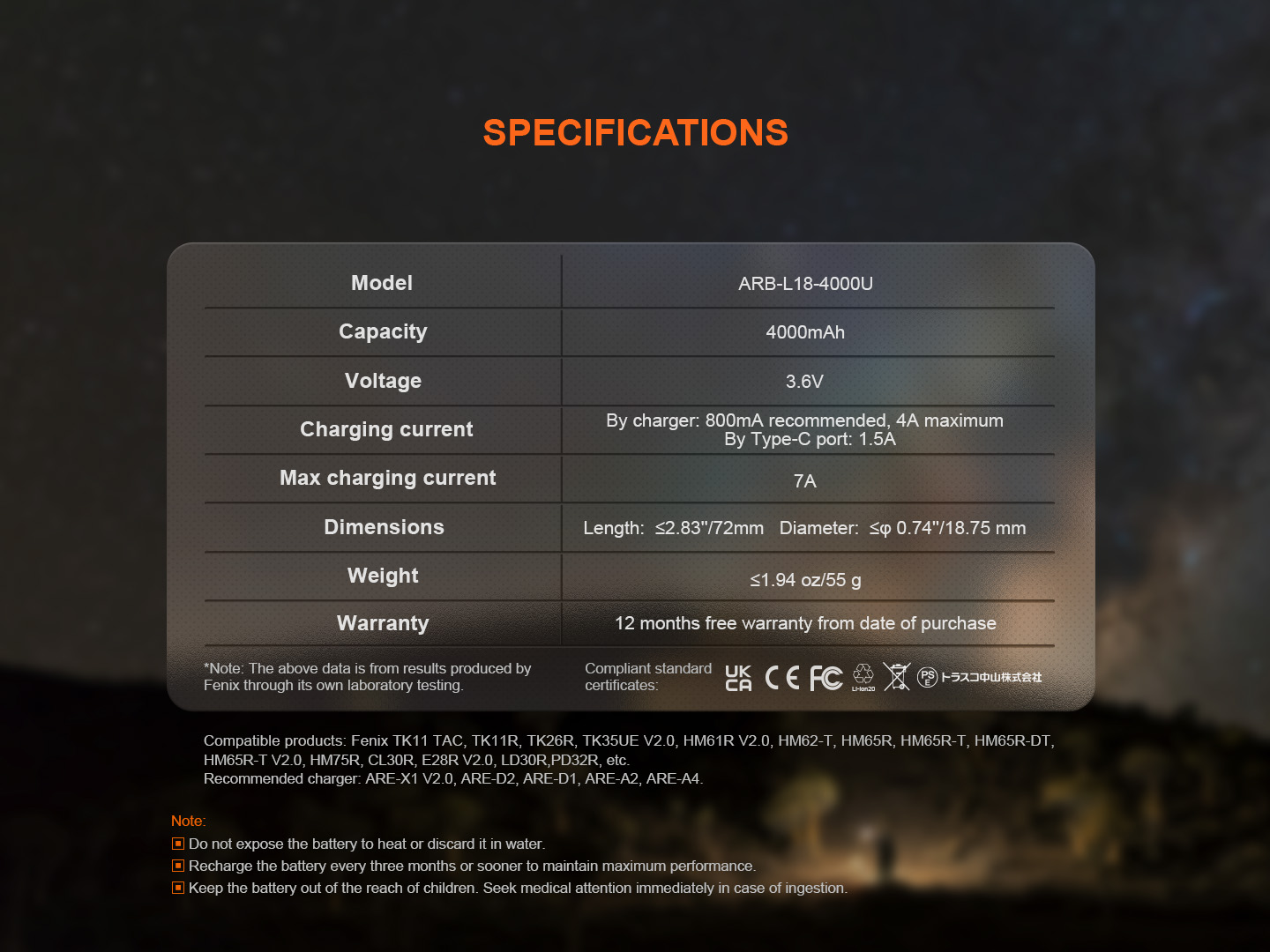 De Fenix ARB-L18-4000U is een 18650 batterij die beschikt over 4000 mAh. Deze batterij beschikt ook over een USB-C-poort waarmee de batterij opgeladen kan worden via een laadkabeltje.