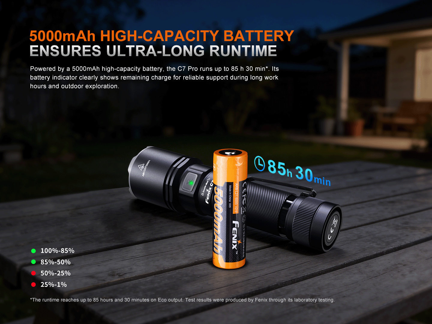 De Fenix C7 Pro is een krachtige, veelzijdige zaklamp. Hij is uitgerust met vier ultraheldere Luminus SST25-leds, die een maximale lichtopbrengst van 4600 lumen leveren met een lichtbereik tot 339 meter. Dankzij de meegeleverde oplaadbare 21700-batterij van 5000 mAh biedt hij een uitzonderlijke brandduur van maximaal 85,5 uur. De zaklamp is uitgerust met een USB-C-poort die 20 W snelladen ondersteunt, zodat u hem snel kunt opladen en weer aan de slag kunt. Met een verbeterde, versterkte behuizing en een opvallende rand biedt de zaklamp superieure duurzaamheid en schokbestendigheid. Dankzij de magnetische voet kunt u de zaklamp handsfree gebruiken door hem op metalen oppervlakken te bevestigen. Van industriële locaties en outdoor-avonturen tot dagelijkse huishoudelijke taken: de Fenix C7 Pro is uw beproefde en betrouwbare verlichtingspartner.