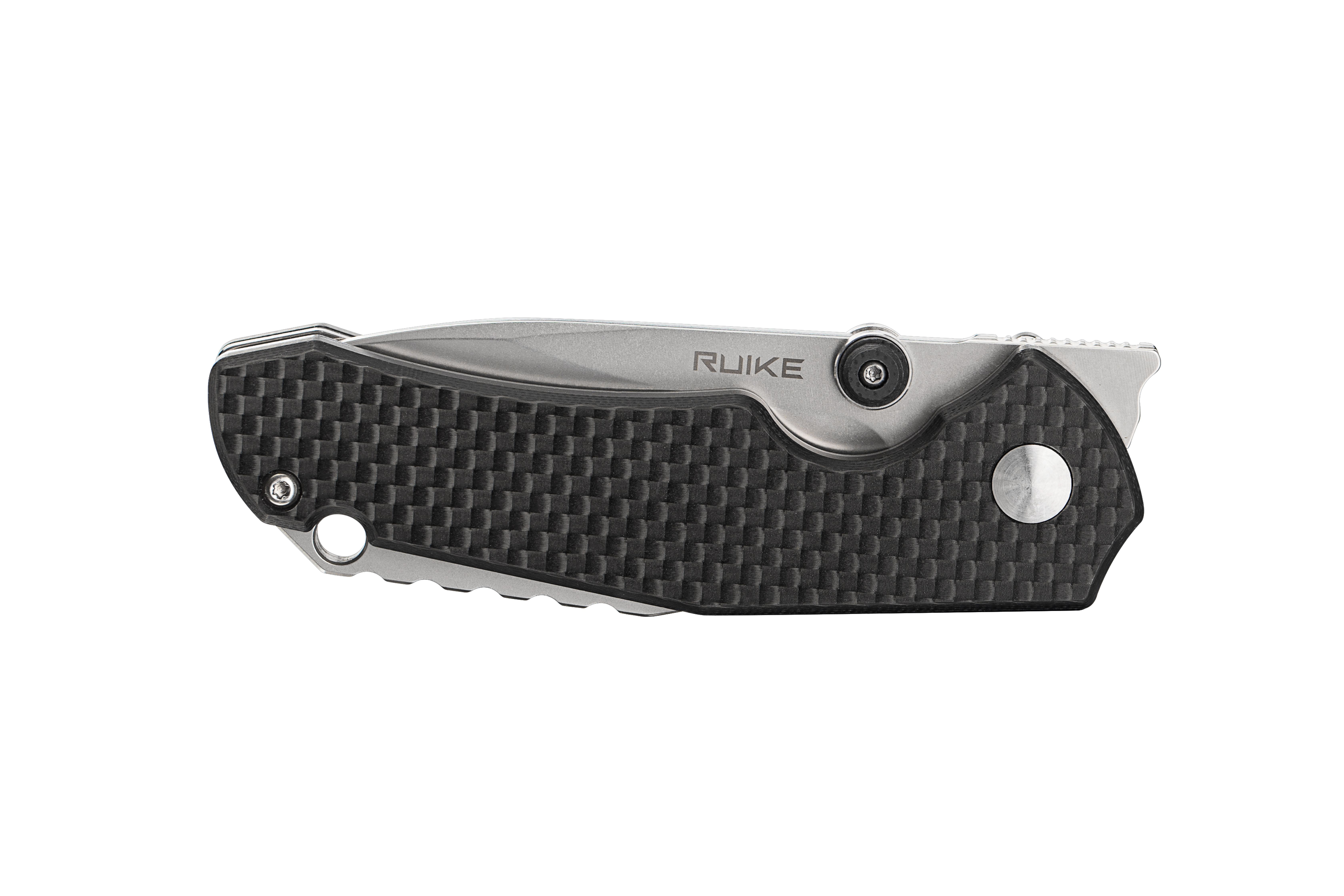 De Ruike P671 is het eerste zeer compacte zakmes gemaakt door Ruike. Met een lengte van 9 cm verwacht je wellicht geen stevig of zwaar te belasten mes maar dat is hij zeker wel. Het lemmet is te openen met front flipper of duimsteun en de linerlock houdt het 3,5mm dikke lemmet vervolgens stevig op zijn plaats. De Ruike P671 is beschikbaar met zwarte schalen in G10 en carbon fiber overlay.